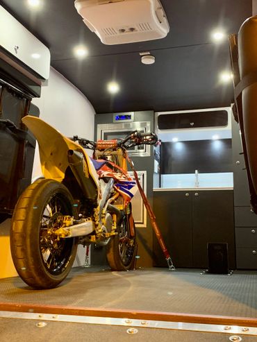 We had been dreaming of building the most badass aluminum toy hauler for years and when COVID hit, it delayed our current production and gave us the opportunity to build the AL27 toy hauler. This toy hauler is made completely out of aluminum and composite materials (exception for the cabinets). This is a trailer that was designed by riders and racers, for riders and racers. It's got everything you want and need and nothing you don't. Currently we are not in production of this model and will remain as a prototype for now.
